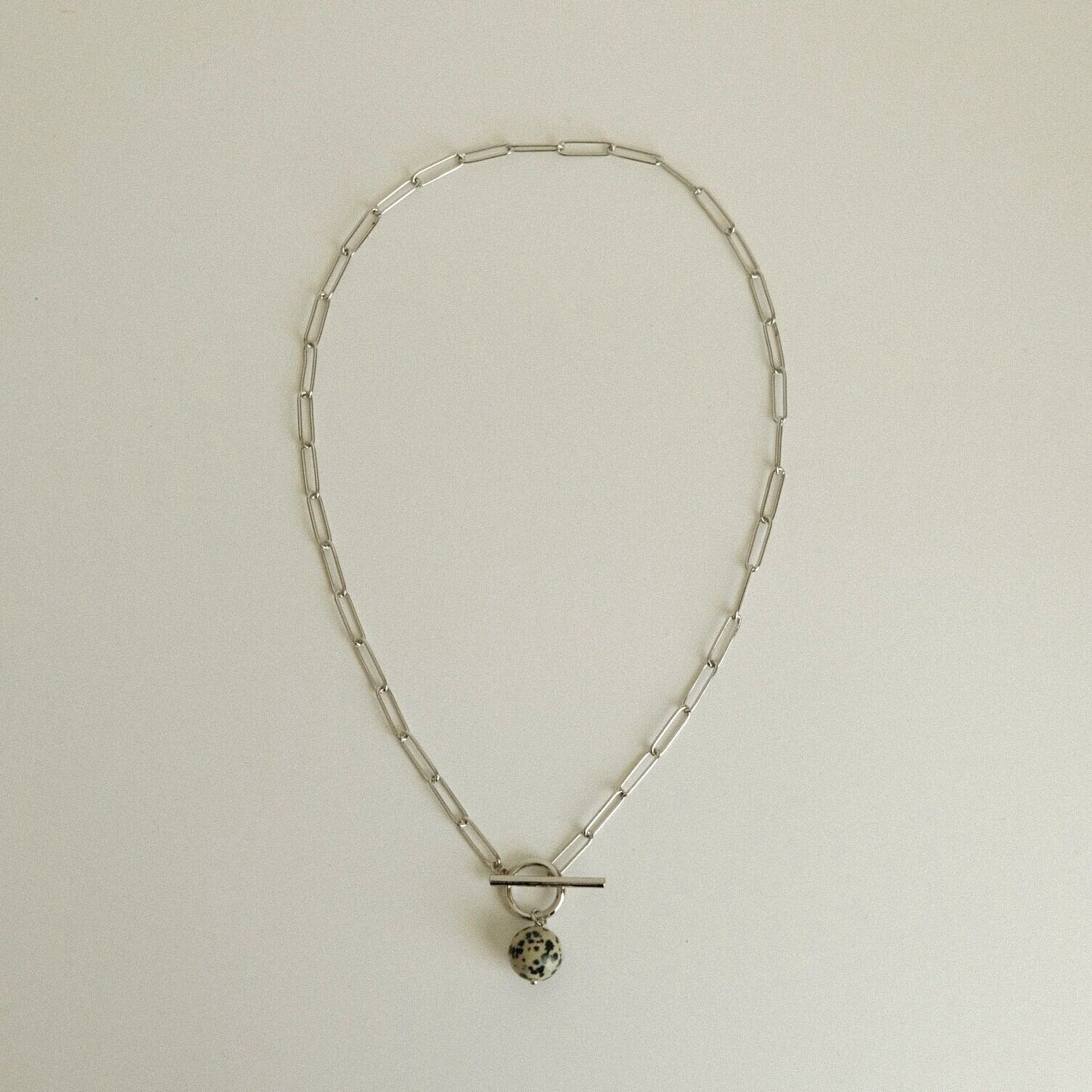 先端には大きな淡水パール、またはダルメシアンジャスパーがついています。