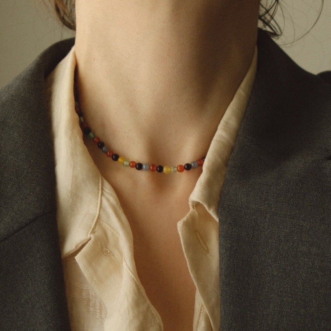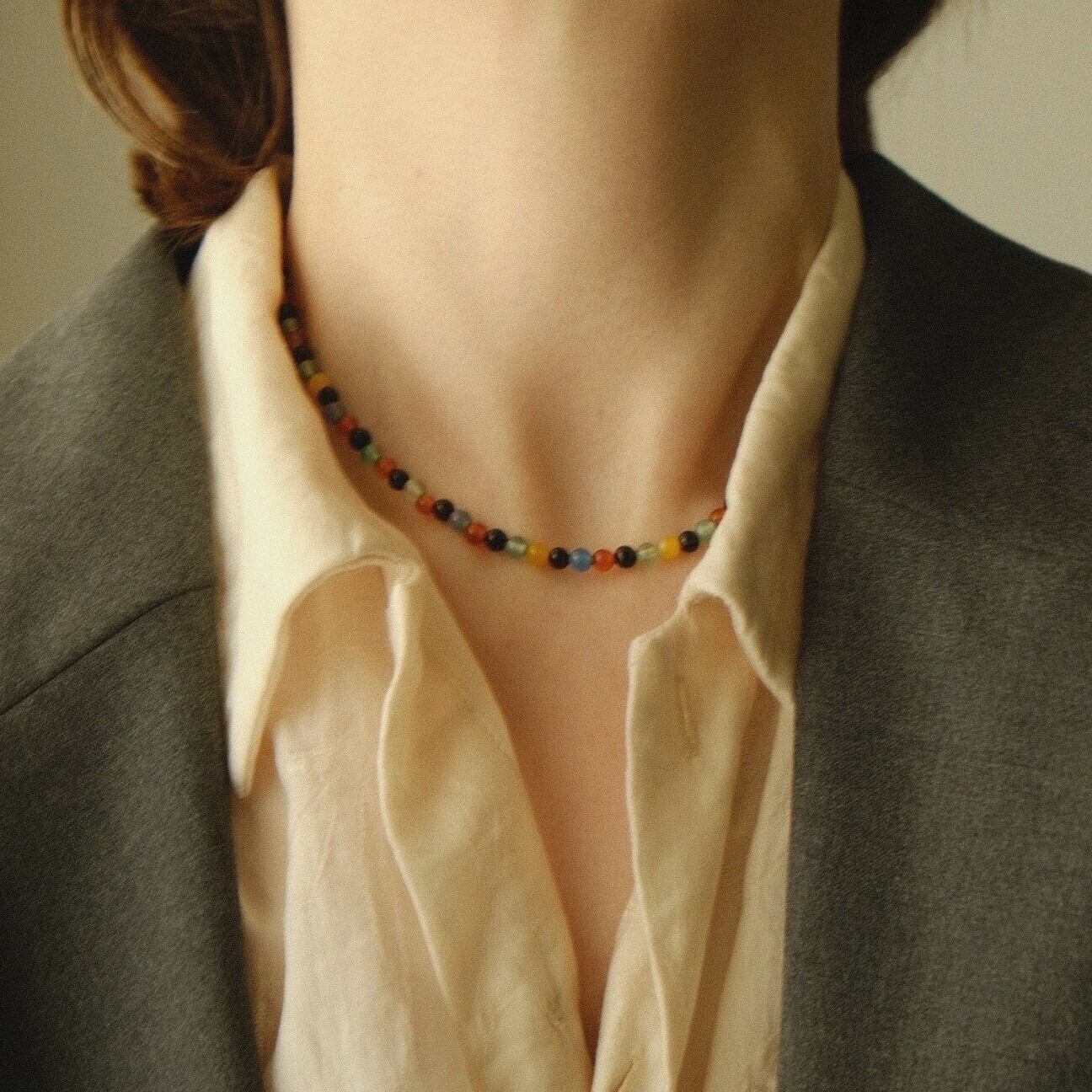 マルチカラーカルセドニー(カルセドニーに色加工したもの)を使用したチョーカー。