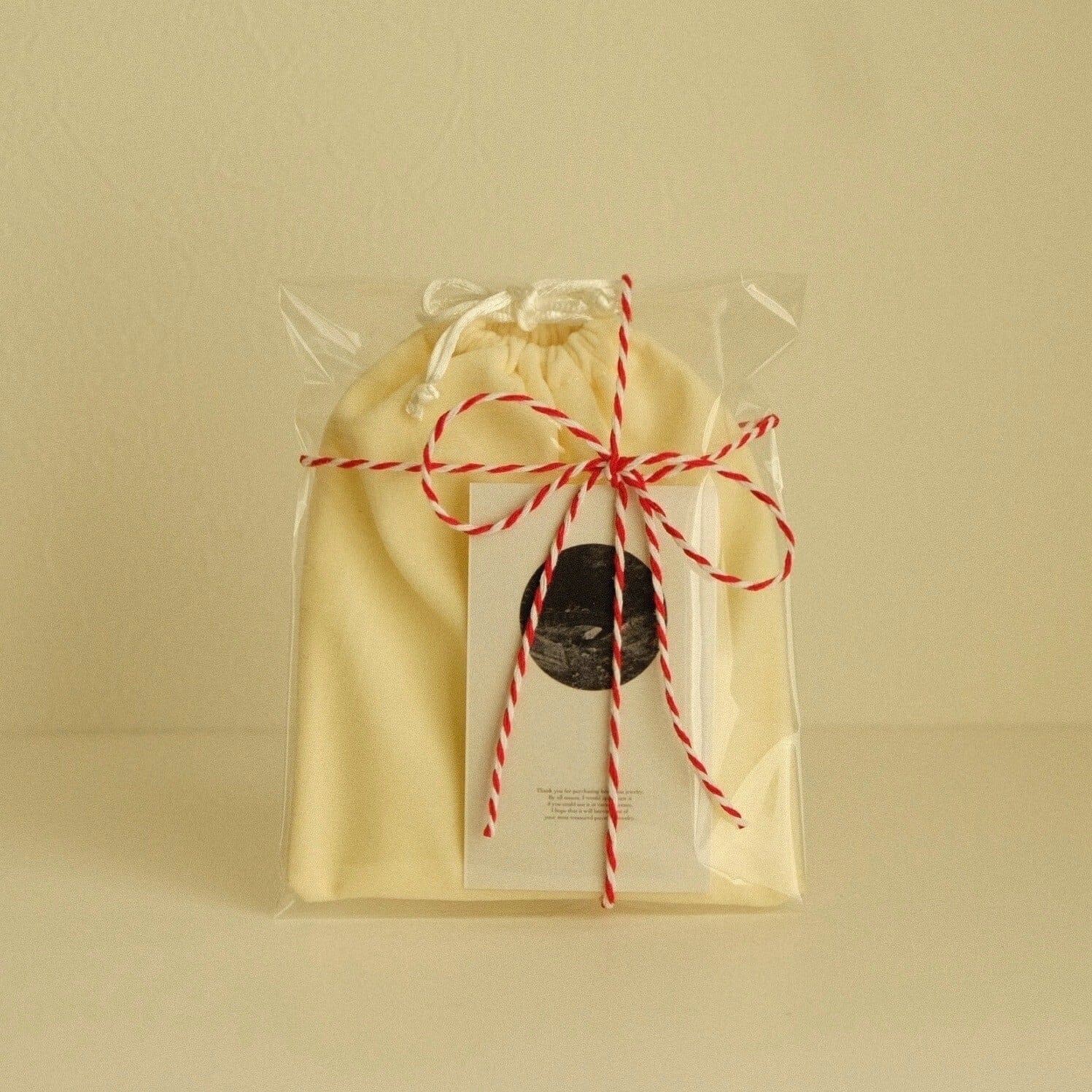 以前まで使用していたBOXを廃止し、全て巾着でのお包みに変更致しました。それに伴い、配送方法もレターパックライト(ポスト投函)とゆうパックの2種へ変更させていただきましたので、ご確認頂きます様お願い致します。